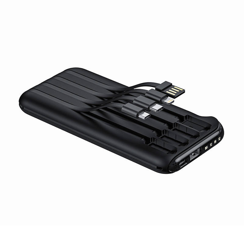 A powerbank 10 000 mAh-s kapacitása lehetővé teszi, hogy készülékeit többször is feltöltse újratöltés nélkül. A Vipfan F10 4 beépített kábelhez biztosít hozzáférést USB-A, USB-C, Micro USB és Lightning interfésszel. Támogatja a Fast Charge technológiát is.  width=