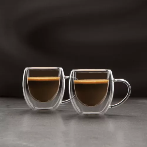 Az önfeledt kávézás, italfogyasztás öröme érdekében modern megjelenésű, duplafalú, boroszilikát üvegből készült pohár szett. Kiválóan alkalmas kávézáshoz, forró és hideg italok fogyasztására is. A dupla üvegfalnak köszönhetően a forró italok nem égetik meg a kezet.