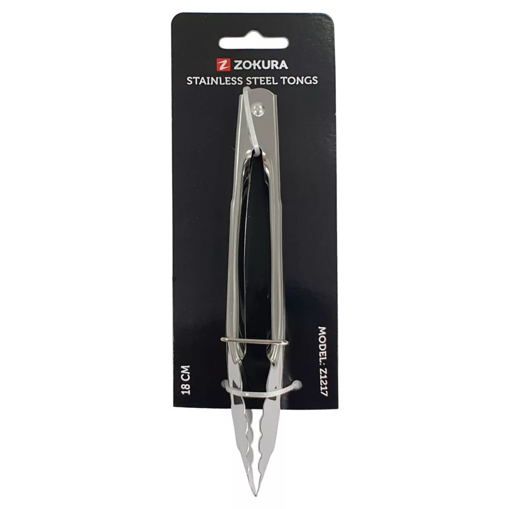 Zokura márkájú, kiváló minőségű 18/10 rozsdamentes acélból készült grillező csipesz. Az anyag, a méret és az ergonómikus forma nélkülözhetetlen eszközzé teszi, ha azt szeretné, hogy olyan roston sültet készítsen  mint ahogy a nagy könyvben meg van írva. A grill fogó rendkívül könnyen kezelhető és kényelmesen használható egy kézzel, a két összeszorító kar pedig reteszelő (záró) mehanizmussal rendelkezik a helytakarékos tárolás érdekében, és ugyanakkor ellenállnak a magas hőmérsékletnek. Hossza: 18 cm.