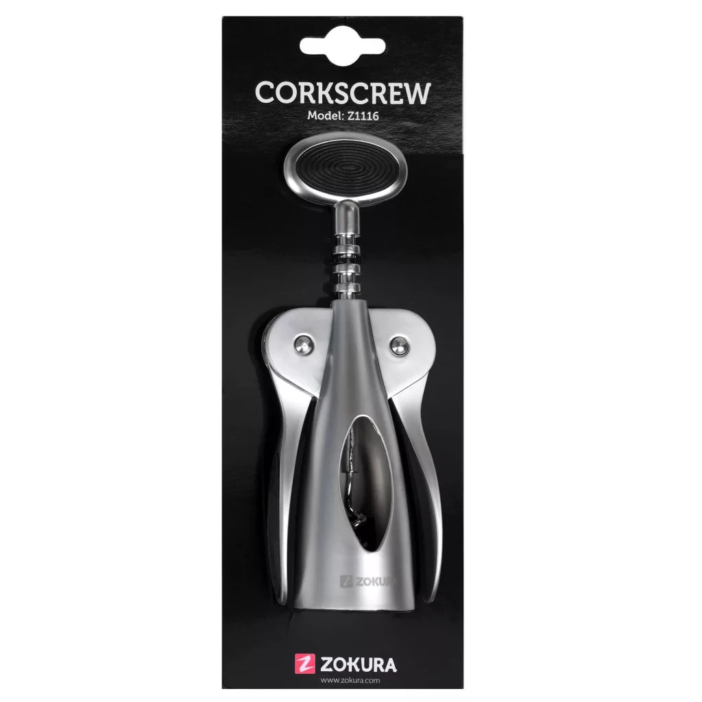 Zokura bornyitó, anyaga krómozott cink, hossza 17 cm. Ez a bornyitó egyetlen borkedvelő fiókjából sem hiányozhat. A kiváló alapanyagból készült bornyitó soha nem hagyja cserben, így mindig felszolgálhatja a legkülönlegesebb borokat vendégeinek. Nyelének egy része csúszásmentes gumi, amely ergonomikus és kényelmes.
