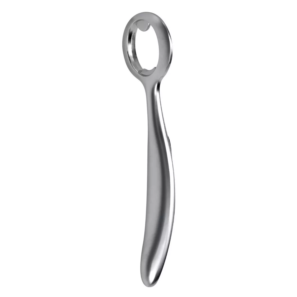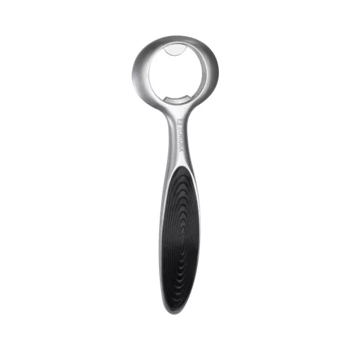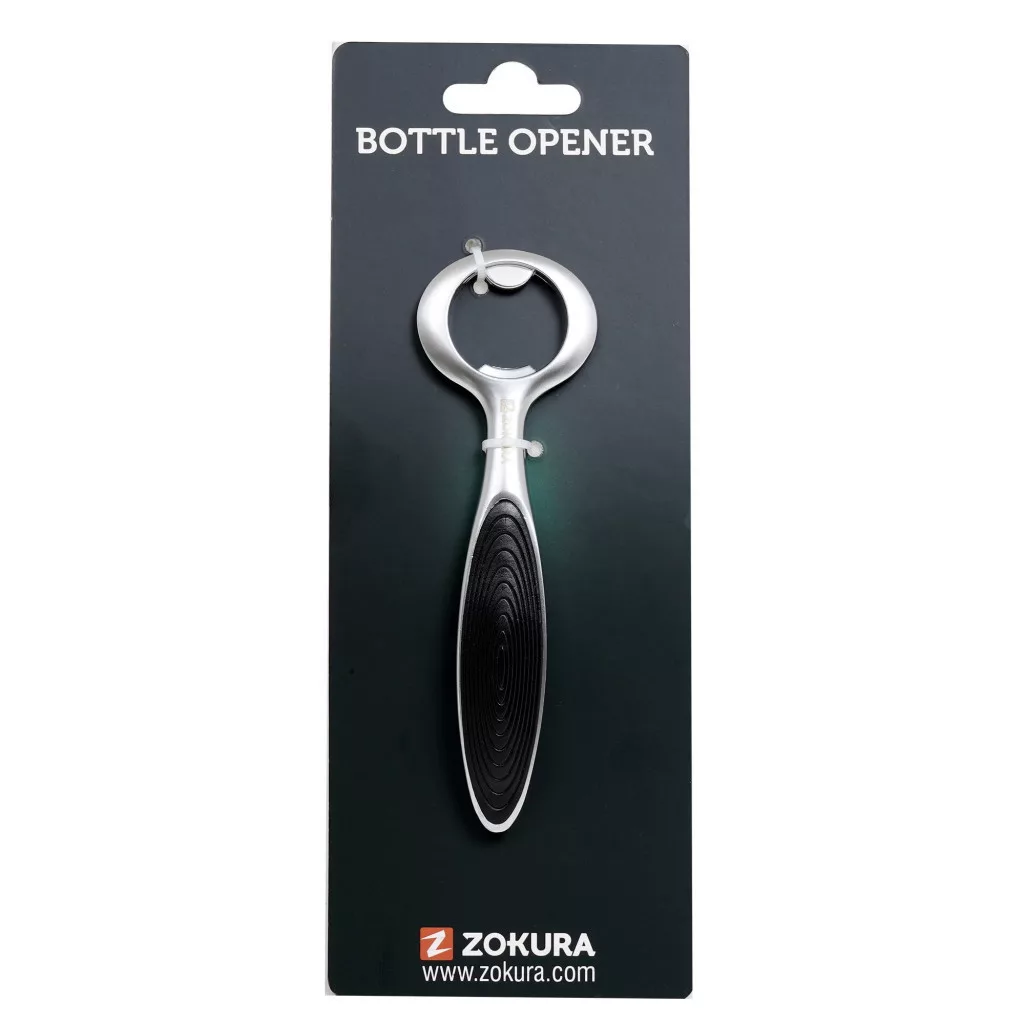 Zokura palacknyitó nikkelezett cinkötvözetből készült. A fogantyú csúszásmentes, hőre lágyuló gumi betétből készült. Mosogatógépben is tisztítható. Méret: 14 cm