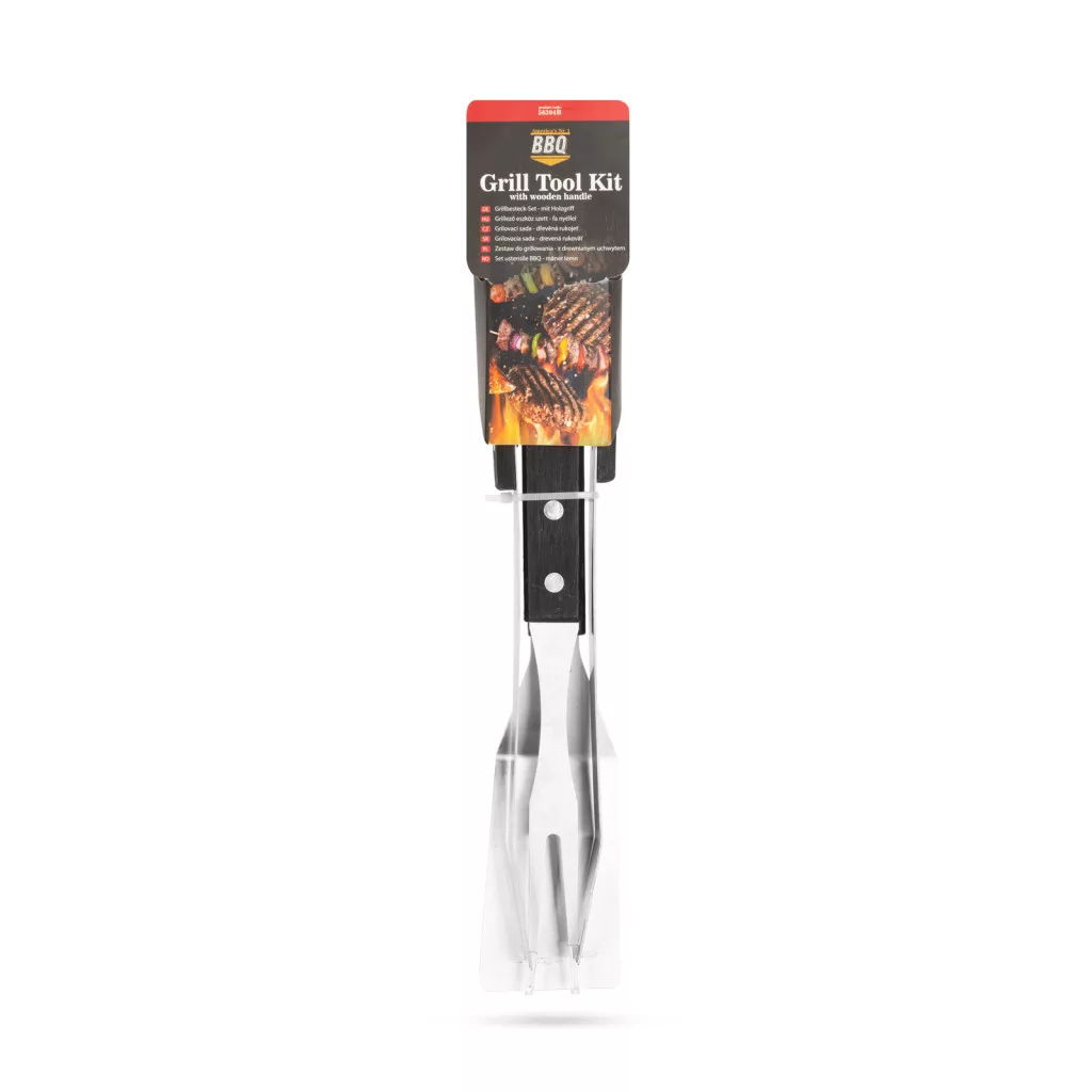 Grillező eszköz szett, 3 db-os, fa nyéllel (BBQ 56304B)