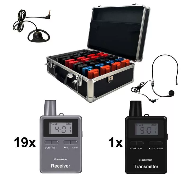Az Albrecht ATR400 Tourist Guide adó/vevő szett ideális választás idegenvezetők számára, akik megbízható és tiszta kommunikációra vágynak. A könnyű, kompakt készülékek 2,4 GHz-en működnek, így zavartalan hangátvitelt biztosítanak akár 200 méteres távolságon belül.