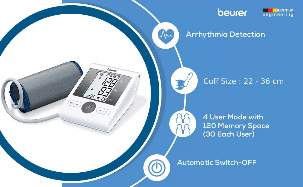 Beurer BM28 Vérnyomásmérő Nyugalmi indikátorral és univerzális mandzsettával + adapter