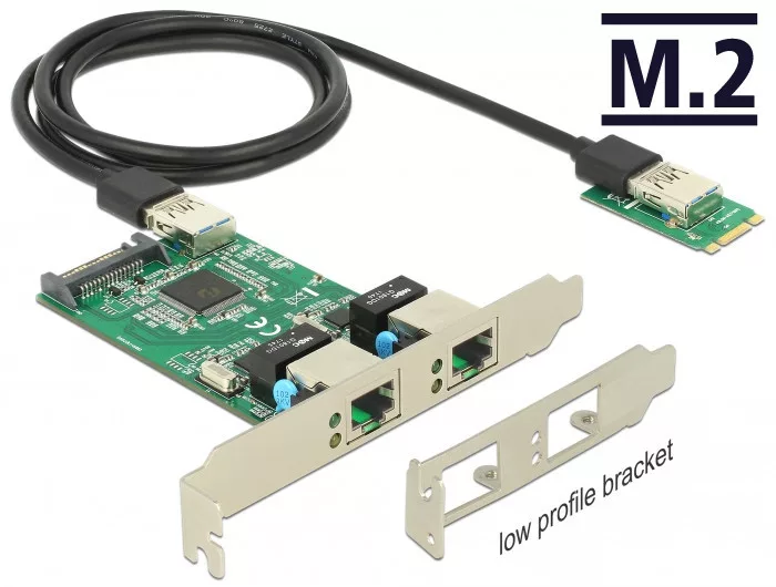 Delock Átalakító, M.2 aljzat B+M nyílással, csatlakozódugó > 2 x Gigabit LAN alacsony profilú form (DL-63425)