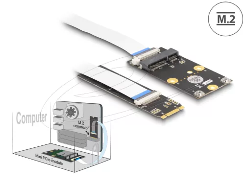 Delock Átalakító, M.2 aljzat B+M nyílással, csatlakozódugó - 1 x Mini PCIe-nyílás fél méretben / teljes méretben rugalmas kábellel (DL-64221)