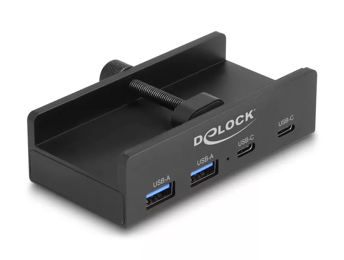 Delock Külső USB 5 Gbps 4 Port Hubon keresztül 2 x A-típusú USB és 2 x USB Type-C -k záró csavarmenettel (DL-64262)