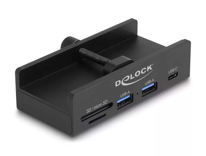 Delock Külső USB 5 Gbps Hub 2 x A-típusú USB, 1 x USB Type-C  és SD + Micro SD csatlakozó felületekkel és záró csavarral (DL-64263)