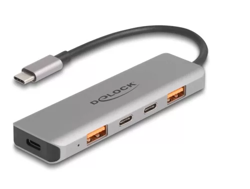 Delock USB 10 Gbps Hub 2 A-típusú USB port és 2 USB Type-C  port USB Type-C  csatlakozóval és PD 95 Watt (DL-64302)