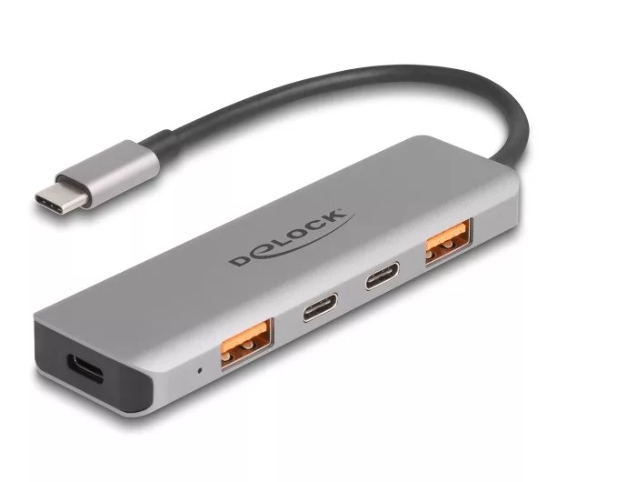 Delock USB 10 Gbps Hub 2 A-típusú USB port és 2 USB Type-C port USB Type-C csatlakozóval és PD 95 Watt (DL-64302)