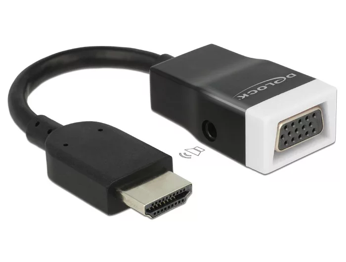 Delock Adapter HDMI-A dugó > VGA hüvely audióval, 15cm, fekete-fehér (DL-65587)