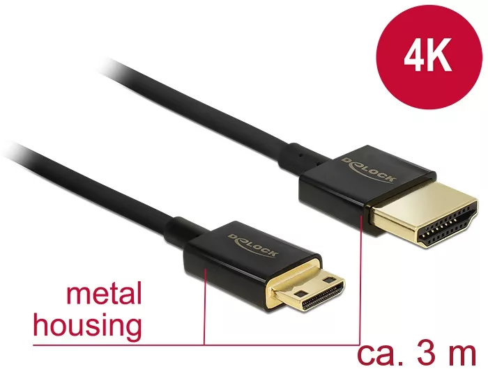Ez az első osztályú, nagysebességű, Ethernet-kábellel rendelkező, Delock gyártmányú HDMI lehetővé teszi, hogy egy Mini HDMI-csatolóval ellátott kamerát vagy táblagépet és egy HDMI-A-porttal ellátott monitort vagy tévét csatlakoztasson. A vékony átmérőjének és rövid csatlakozóinak köszönhetően kitűnik a tőbbi termék közül. A háromszorosan árnyékolt kábel gyors adatátvitelt, illetve hang-/video- és Ethernet-csatlakozást biztosít. A maximum 18 Gb/s sávszélességnek köszönhetően mostantól lejátszható a 4K tartalom (max. 60 Hz-es képváltási sebességgel), a 4K felbontású 3D-tartalom (max. 24 Hz-es képváltási sebességgel) és a 21:9 (mozi) képarányú tartalom. A kábel segítségével két videocsatorna egyidejűleg továbbítható, hogy két felhasználó tudjon egy képernyőn videostreameket megjeleníteni, ezenkívül akár négy hangcsatorna is egyidejűleg továbbítható. A hangátvitel minősége a max. 1536 kHz-es mintavételezési frekvenciával jelentős mértékben javult.
