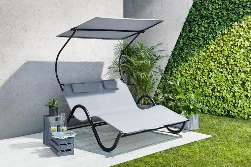 A DELUX napozóágy kétszemélyes kialakításával tökéletes választás pároknak, akik együtt élveznék a napsütést vagy épp az árnyékos pihenést a kertben vagy teraszon. Dönthető árnyékolójával mindig a megfelelő fényviszonyokat teremtheted meg.