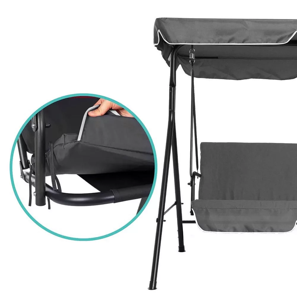 A masszív fém váz és a 100% poliészter borítás hosszú élettartamot biztosítanak. Az erős rugós felfüggesztés stabil, mégis lágy ringatózást nyújt akár három fő számára is. Teherbírása 180 kg, így tökéletes családi vagy baráti összejövetelekhez.
