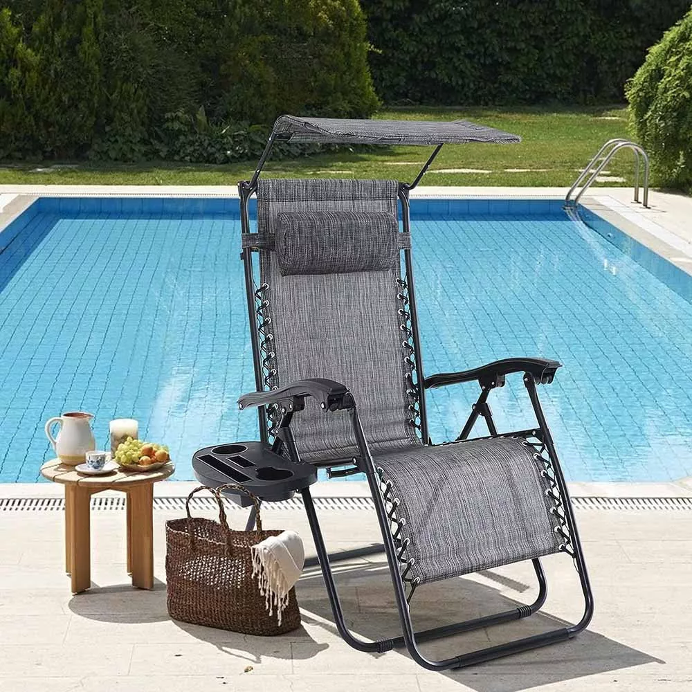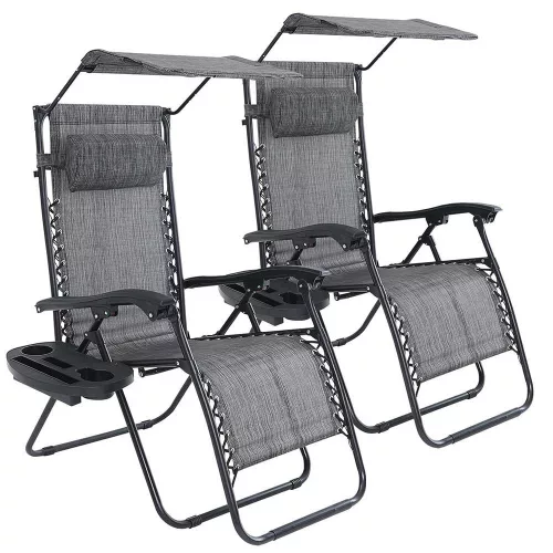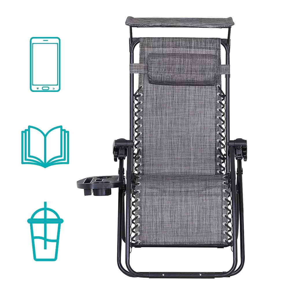 Timeless Garden Zéró gravitáció szék napellenzővel és pohártartóval 2 db, több színben-szürke (HOP1001529-1)