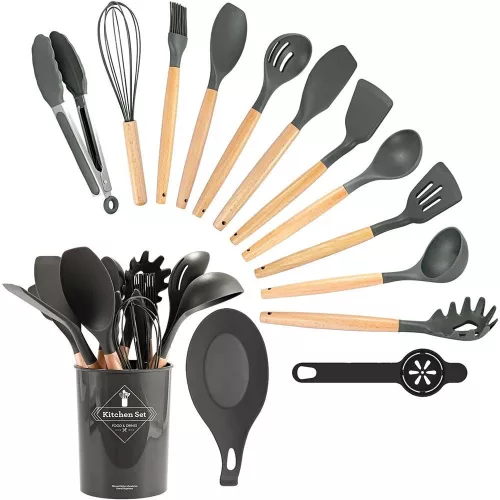 Timeless Gourmet 14 darabos konyhai eszközkészlet, hőálló szilikon fejjel, tartóval, sötétszürke (HOP1001658-2)