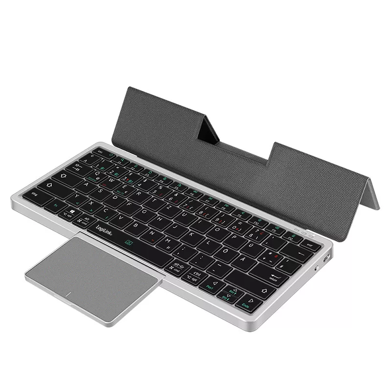 Logilink Vezeték nélküli többeszközös billentyűzet, BT 5.1, érintőpaddal és levehető borítással, szürke (ID0214)